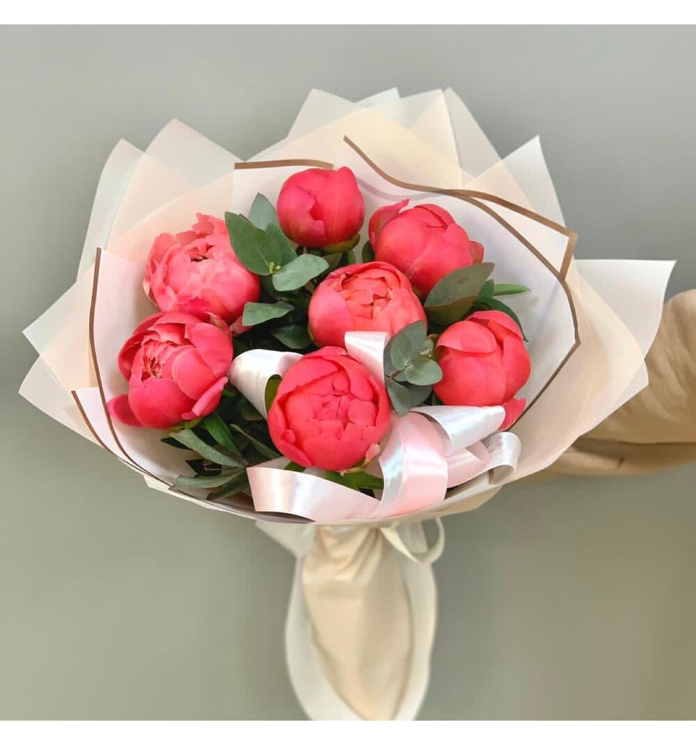 Этот очаровательный букет завораживает своими нежными коралловыми оттенками. Эти прекрасные цветы обладают яркой красотой и придают композиции особый шарм. Изящные пионы символизируют богатство и процветание, а их утонченный аромат приносит радость и вдохновение. Букет "Пионы коралловый шарм" станет прекрасным подарком для особенных моментов жизни, олицетворяя нежные чувства и надежду на счастье. Украсьте этим букетом свой дом или сделайте приятное сюрприз близкому человеку, и он навсегда останется в его сердце.